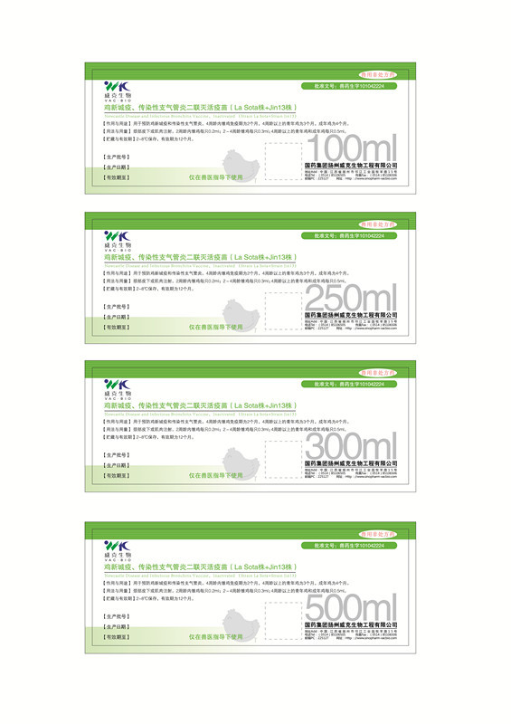 鸡新城疫、传染性支气管炎二联灭活疫苗(LaSota株+Jin13株)