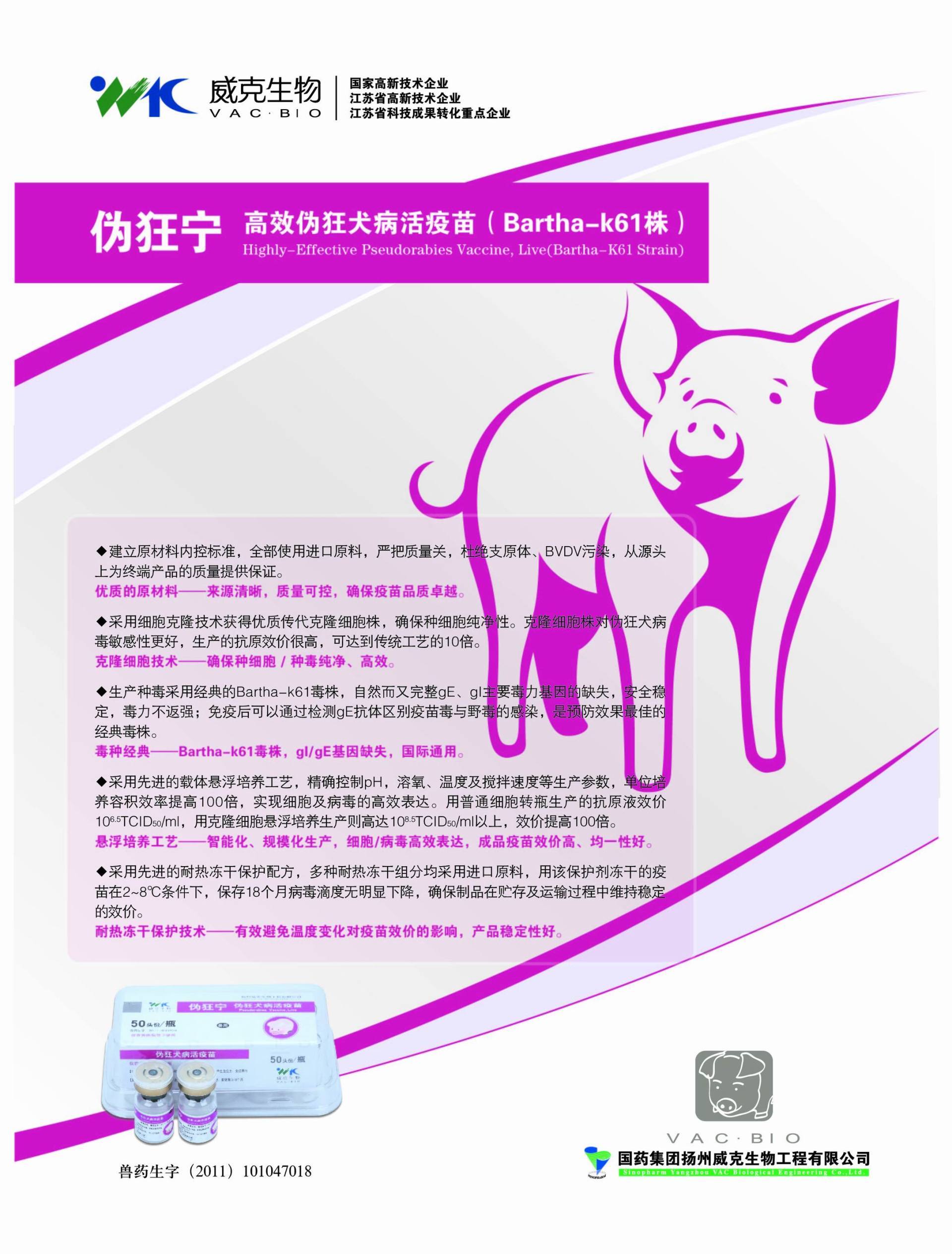 通用名 高效伪狂犬病活疫苗(Bartha-K61株)